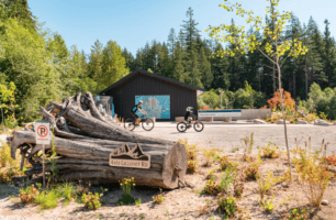 (courtesy Metro Vancouver)“We really want people in the region to understand where their drinking water comes from and the relationship between a closed protected land and source water quality,” said Heidi Walsh, director of watersheds and environment, reflecting on the building's unique position between the mountains and the filtration plant. “It’s easy to make the connection between the rain falling in the mountains then going through the filtration process and out to our taps.” The new facility was created with an intentional educational design. Architects Local Practice aimed to nestle the building into the landscape while incorporating practical and educational features like cisterns.“The way we have built it is to have a lot of the interpretive features outside the building,” said Walsh. “The map, the cisterns, and we have tried to incorporate some pipe into the seating. It is partially an outdoor classroom, so any member of the public passing by can learn about the watershed.”Local Practice’s website explains the intention behind the design. “The building is an educational tool for visitors to understand the relationship between our water source and water use. Rainwater is collected off the north side of the roof into the educational cistern, which overflows into channels for visitors to engage and play in the educational area. The rainwater from the south side of the roof is collected into the greywater cistern and it is used for toilet flushing to directly reduce the water consumption of the building. Any overflow water from either cistern travels through the bioswales and is returned to the natural hydrological cycle in the Lower Seymour Conservation Reserve.”