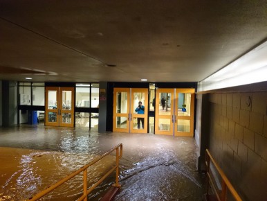 As for the school, we have had overwhelming support from so many: the emergency first responders, both police and fire; the NV District staff who did their utmost to manage the flow of water; the NV School District response team who attends any event at a school, even in the dead of night; our own incredible custodial team who normally finish their shift at 11:00pm and stayed until 7:00am; and to the students who appeared at the front door at midnight to offer their assistance.As the dawn broke, five Barclay Restoration trucks were parked outside the front doors and by 9:00am over thirty of their staff were hard at work mopping, cleaning, packing boxes and beginning the restoration of the eight affected classrooms and communal areas. Assessment of the damage is ongoing with concern for the silt that was in the water. No organic material can be left under cupboards, shelves, carpets or tiles due to potential residual damage over time.