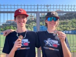 Cheyne and Allen in Spain.“We went to go play baseball and have fun. It was so cool to hear different languages and accents all playing together. We played against Italy so they were yelling in Italian – it was about baseball but somehow cooler,” chuckled Allen. Their brief time with the U18 team for GB paid off: both Allen Cheyne received invitations to join the team this summer, which has sparked dreams of more play for GB – the way to the Olympics in 2028.