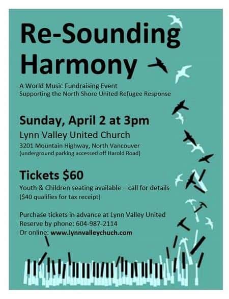 There are two musical fundraisers coming to our neighbourhood to promote two excellent causes!On Saturday, March 11, acoustic guitarist Stephen King will be hosting an evening of good music and good company to raise funds for those affected by the recent Upper Lonsdale apartment fire. Non-perishable food donations to the Harvest Project are also welcome at the door, as the Harvest Project has been helping those rendered homeless with some immediate needs.The concert will take place at St. Clement's Anglican Church, 3400 Institute Road, starting at 7 p.m. Details are here.And over at Lynn Valley United, a great evening of world music is being planned for Sunday, April 2 at 3 p.m. According to their post:This concert is a fundraiser for North Shore United Refugee Response, a cooperative effort by the seven United Churches on the North Shore to sponsor two Syrian families fleeing their homeland and currently waiting in a refugee camp for entry into Canada. More than sponsorship, this endeavour will re-unify the refugees with families that have already settled in the Lower Mainland.In celebration of diversity, fascination with all cultures, and building harmony through the language of music, you are invited to join us at Lynn Valley United Church on Sunday, April 2 at 3:00pm for an auditory and visual feast of music and song. From Indian tanbur to a children’s choir and Syrian guitar, from didgeridoo to string quartet, come hear the many colors of instruments in our world.So if you're looking for a way to get out and enjoy a new musical experience without having to travel out of your neighbourhood - and like to know that you're supporting a good cause at the same time - these concerts might be what the doctor ordered!