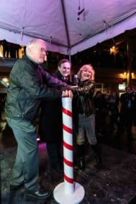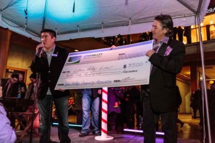 On December 1, in front of a huge crowd, North Vancouver District Mayor Richard Walton, MP Andrew Saxton and MLA Jane Thornthwaite flipped the switch to light up Lynn Valley Village, forested with over 70 decorated trees sponsored by local businesses and organizations.Mayor Walton couldn’t stay long, however; he was soon off to Mollie Nye House’s Bright Nights celebration, where with the flip of another switch the heritage home was transformed into a must-see roadside attraction.These events kicked off a pre-Christmas season that is becoming ever more celebratory in this neighbourhood. The “Lynn Valley Christmas” event, organized by the Lynn Valley Community Association, is now in its third year. The Lynn Valley Lions donate the trees for the Christmas Tree Walk, with money raised by tree sponsorships supporting the Lions Christmas hamper program and LVCA community events. (People can further support this charitable work by purchasing their tree from the Lions in the Karen Magnussen parking lot!)
