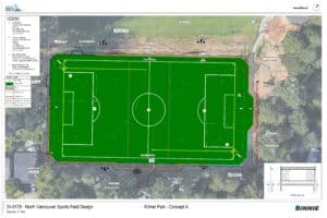 As a large infrastructure project for the district, the league is advocating for safety, long-term use and access for multiple user groups. “When we asked if there would be backstops and dugouts kitty-corner to the existing ones, it was met with a no,” said Benson. “If we are investing this much in a multisport facility it would be nice to include baseball in that because it’s important for young kids to have a safe place to sit and be coached away from the crowd and protected from gameplay.”Halicki said they are excellent – local – examples of turf fields designed for use by both soccer and baseball, like the facilities at UBC. DNV staff responded that such configurations would be confusing for soccer players. “After seeing the initial drawings, we discussed it as a board. Bolder lines and maybe a lighter shade for the in-field,” said Benson. “It, apparently, was discussed on their end but brought back that it would be too confusing for soccer, but how won’t it be confusing for baseball if it’s not incorporated at all?” It’s an argument Halicki thinks is illogical. Using the example of an indoor gymnasium with lines and coloured zones for five or more sports being used by athletes of all ages. “We want to make sure we aren’t forgotten,” he said.”We don’t understand the argument that it’s confusing for the athletes. It doesn’t hold water in the context of a gymnasium. I don’t understand why the District wouldn’t want to support multiple sports – whether it’s baseball, field hockey or soccer. UBC has just done a soccer and baseball hybrid and I don’t think they should be concerned about a brown spot showing where the plate is and where the mound is.”