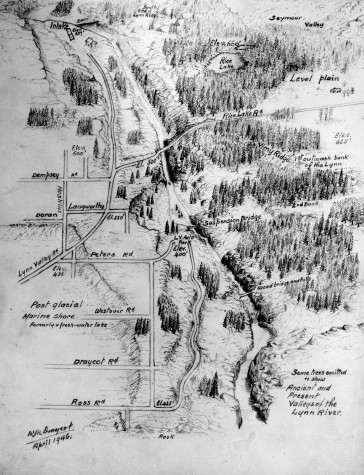 Lynn Valley in 1946, as drawn by Mr. Walter Draycott. Courtesy North Shore Museum and Archives.