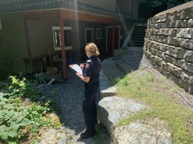 FireSmart assessment in action.“I know people like having their firewood accessible but move it away. What you have to consider is that if there is a forest fire it is like a snowstorm of embers. Those embers can travel hundreds of metres and land in the woodpiles or a pile of brush. And that tiny little ember will become a fire that was nowhere near the initial fire.”With the goal to have homeowners take action now, the DNVFRS is offering support to help neighbourhoods be FireSmart. “We would like to encourage communities that are near the first to connect and reach out to the fire department, so we can get out into the neighbourhood - especially Lynn Valley,” he said. “We can do those community assessments and put a report together. Reach out to us - to me and we can send out a local FireSmart representative and get the process started. We would love to organize a group and have a community champion but anyone who has questions or concerns can talk with us.”DNVFRS also plans this summer to be present in local parks for fire education and perhaps a spray or two for the kids. A sort of pandemic pivot of their previous year’s Hot Nights outreach. As for the ongoing wildfire prevention programs, Breakey thinks the education and action are paying off.“We are making quite a few efforts and a lot of progress at the moment.”Breakey recommends checking out the extensive resources at