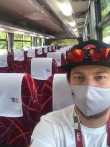 Trotter: The night before I wash and check over the bikes and get all my things organized for the next day - like spare parts and wheels that I bring to the tech/feed zone. Race day Tara and I head to the race early on the bus to get our pit area at the venue set up. The riders get driven to the race with Dan. Then I just hang out and help as needed - putting a bike on a trainer or some tire changes. With 15 minutes to start, I'll walk down to the tech area and set up my tools and spare wheels. Sometimes I help with bottle feeds.