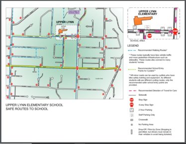 There are plenty of active ways to get to school and school district has partnered with the District of North Vancouver to publicize the safest active transportation routes to neighbourhood schools. The Transit/Carpool/Drive-to-Five campaign also can work for older elementary students and all-round will make the streets safer for all students by reducing traffic around the congested school areas.