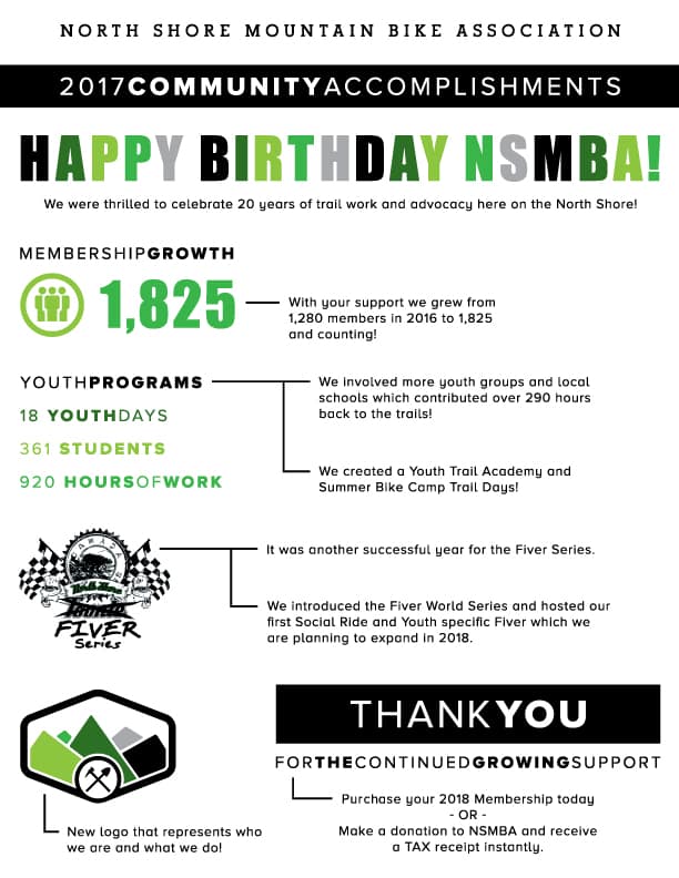 Moving into 2018, we are aiming to get even more members and volunteers out on the trails than ever before and hope to see even more people out having fun in the forest.How can Lynn Valley help the NSMBA?