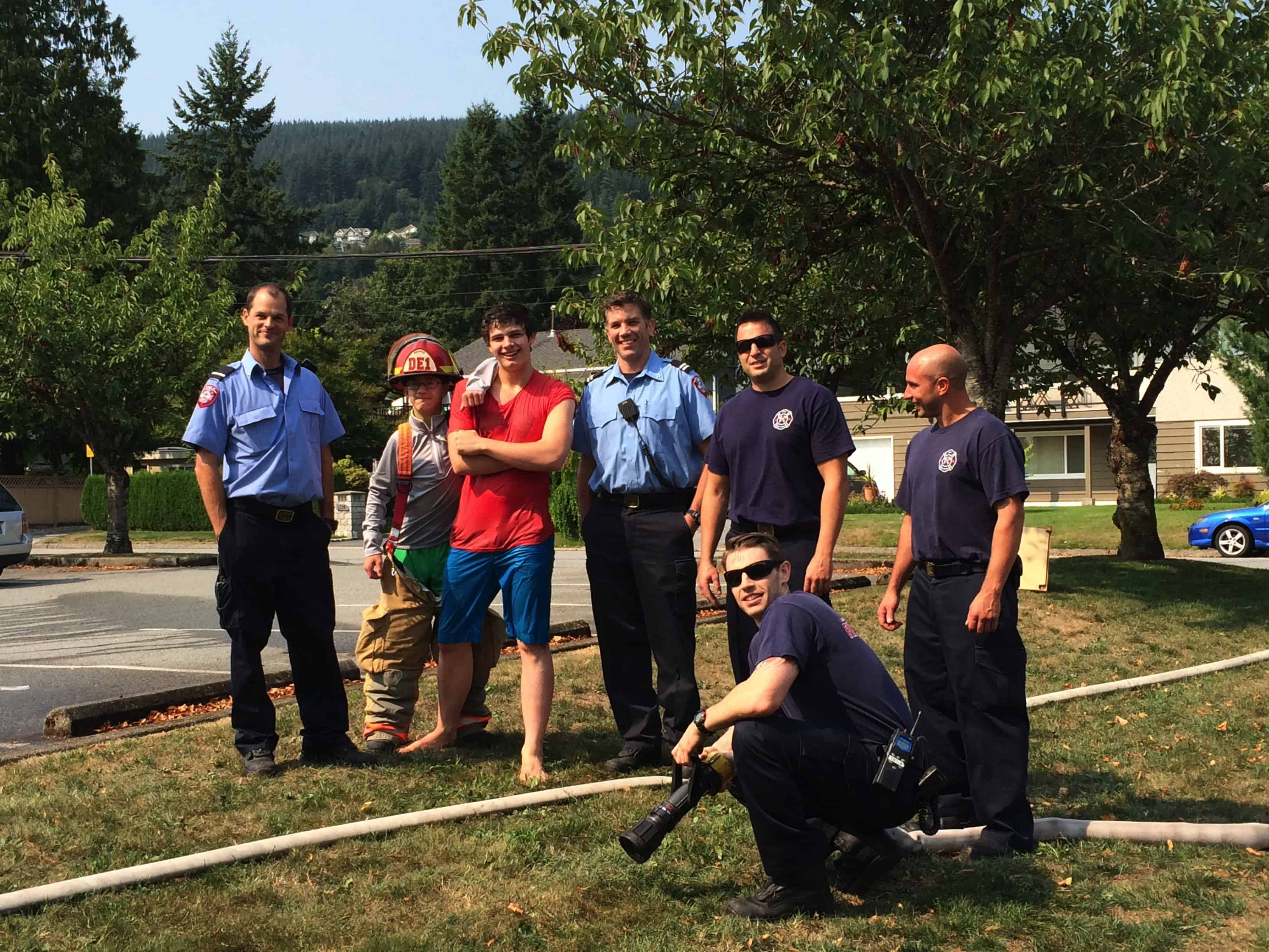 With the help of the Lynn Valley firefighters, one local teen was able to - literally - have a blast with his Ice Bucket Challenge, as seen on this video he posted to our Facebook page on August 22. This freeze-frame might make you feel frozen indeed!The ALS Ice Bucket Challenge has gone viral and then some this summer, raising over $22 million in funding for the ALS Association. ALS, or amyotrophic lateral sclerosis, is also known as Lou Gehrig's disease. Participants in the challenge, which entails dumping a bucket of ice water on one's head and challenging others to do the same and/or donate $100 to the association, have ranged from average people of all ages to wellknown celebrities and politicians.In this made-in-Lynn Valley version, Sam enlisted the help of the obliging Lynn Valley fire crew, who met him at the park and blasted him nearly off his feet in the name of a good cause. Sam - who challenged a couple of his high school friends, along with DNV Mayor Richard Walton to do their own Ice Bucket event - survived the hosing off, and had many thanks for the firefighters who took part. Hats off, too, to young passerby Cole Diemart, for suiting up in fire chief gear and leading the blast-off!