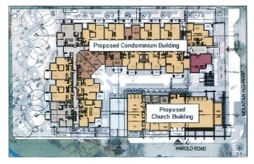 A full house packed North Vancouver District council chambers on Tuesday, March 18 for the public hearing regarding the redevelopment of the Lynn Valley United Church property.At stake is the rezoning that would allow the church to proceed with plans for a new church building facing Mountain Highway, bordered on the north and west by a four-storey multi-family complex. Included would be 75 one, two and three bedroom units, four of which would be sold to the North Shore Disability Resource Centre at cost for use as affordable, accessible rental housing for their clients. Also included would be enhancements to the riparian area around Hastings Creek.At the outset, North Vancouver District Mayor Richard Walton apologized that the public hearing was inadvertently called during the spring break vacation, the result of trying to schedule an evening in between councillors' other travel commitments. Having heard that some of the church neighbours living in the complex at 3275 Mountain Highway were unable to speak due to the school holiday, council voted at the end of the evening to continue the matter with further submissions accepted at a second hearing night on Tuesday, April 1.