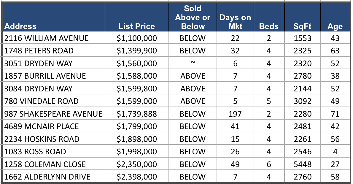 There were 12 detached homes sold in April with an average sale price of $1,685,916 (median = $1,652,500)