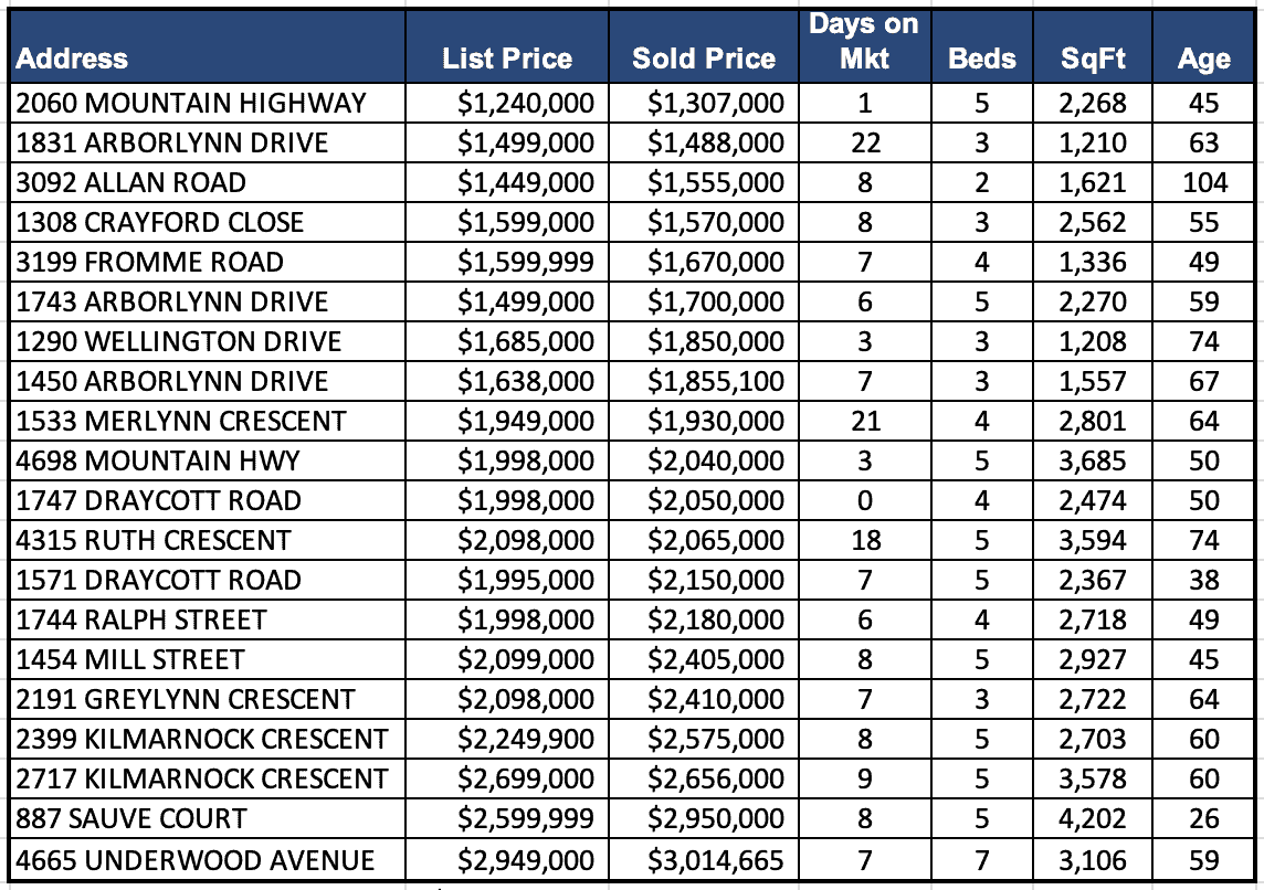 There were 20 detached homes sold in April with an average sale price of $2,071,038 (median = $2,045,000)