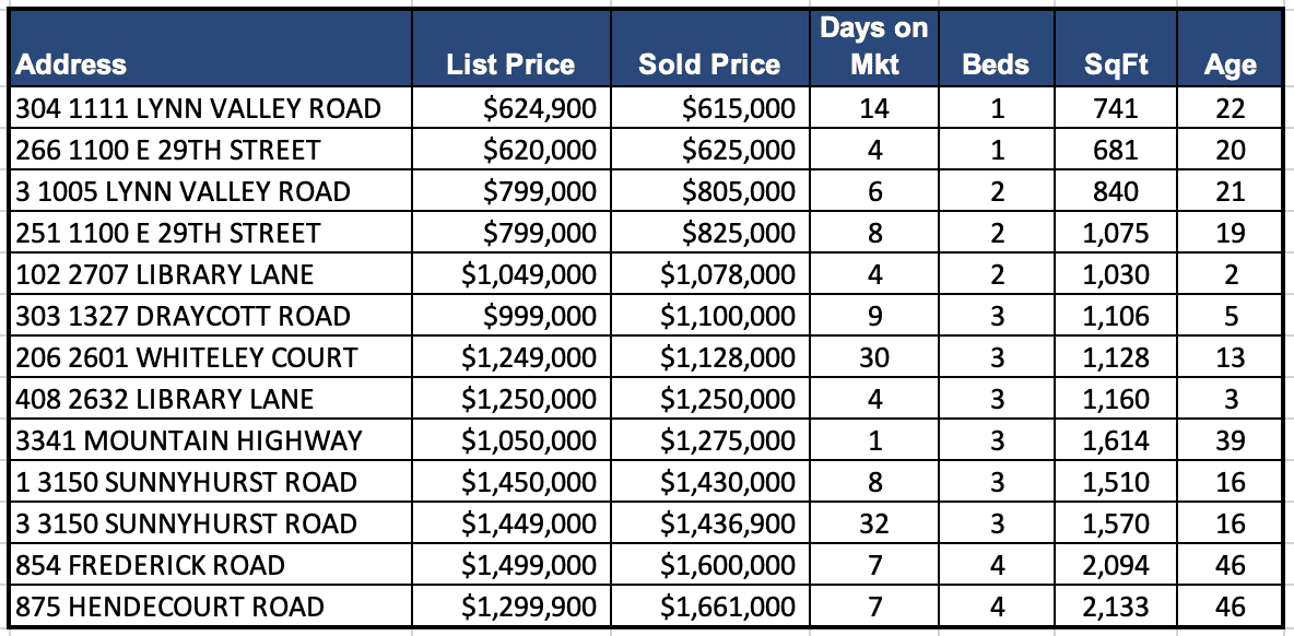 There were 13 attached homes sold in April with an average sale price of $1,140,684 (median = $1,128,000)