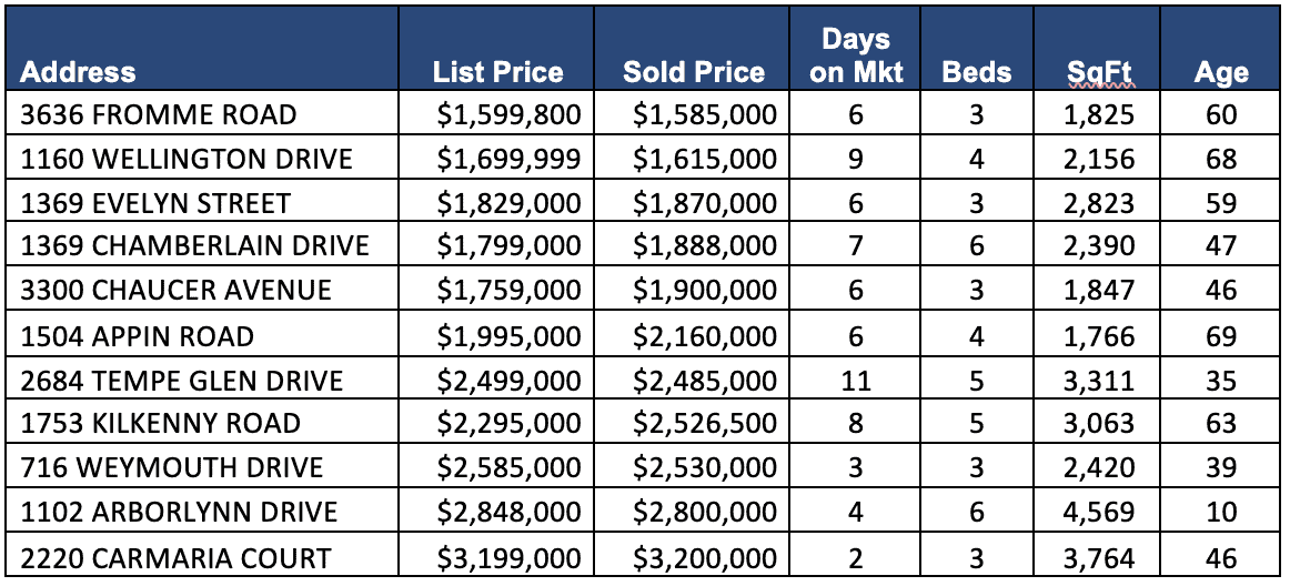 There were 11 detached homes sold in April with an average sale price of $2,232,681.82 (median = $1,995,000)