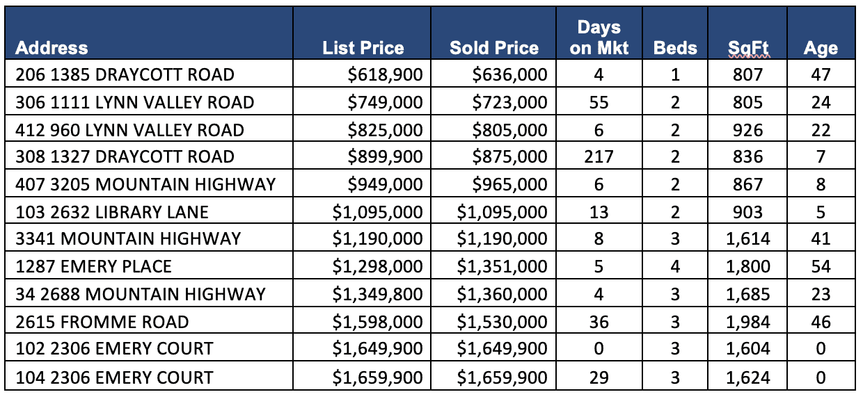 There were 12 attached homes sold in April with an average sale price of $1,153,316.67 (median = $1,142,500)