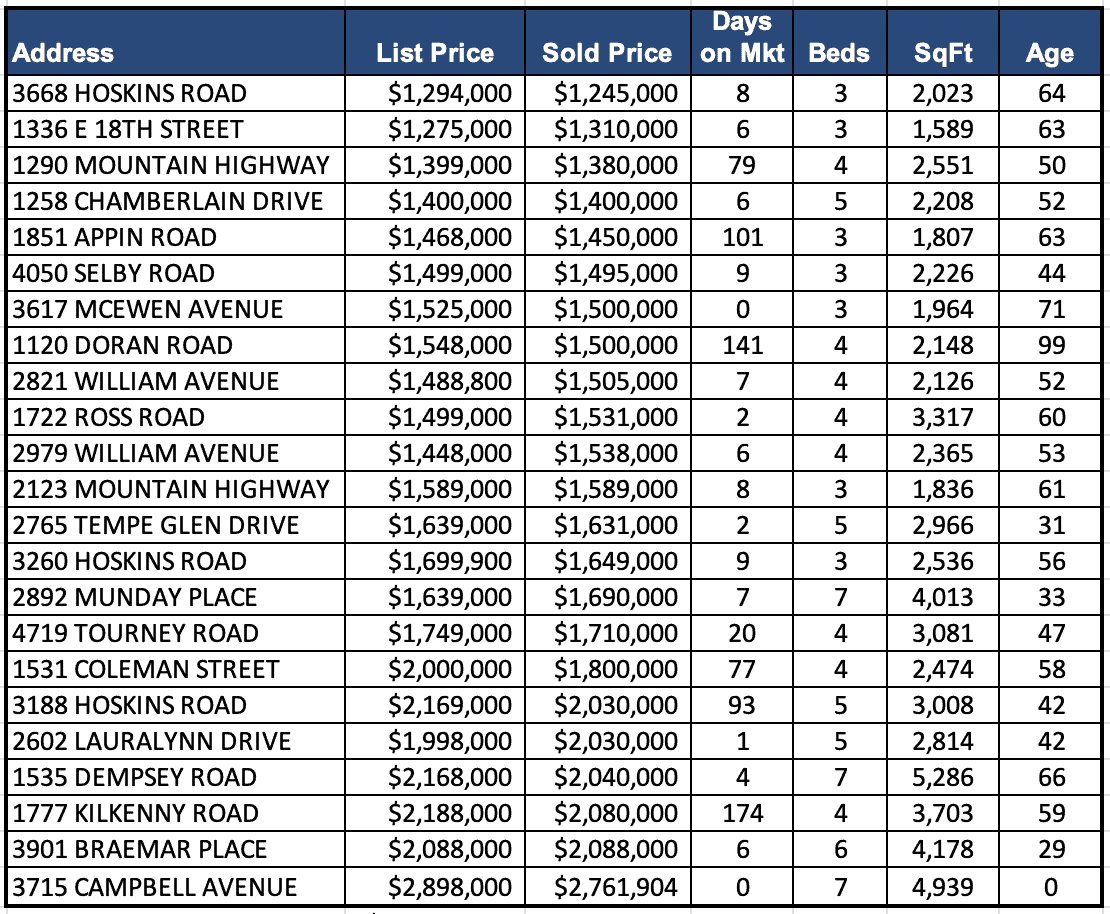 There were 23 detached homes sold in August with an average sale price of $1,693,604 (median = $1,589,000)
