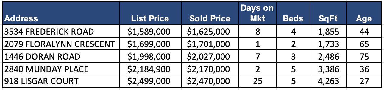 There were 5 detached homes sold in September with an average sale price of $1,998,600 (median = $2,027,000)