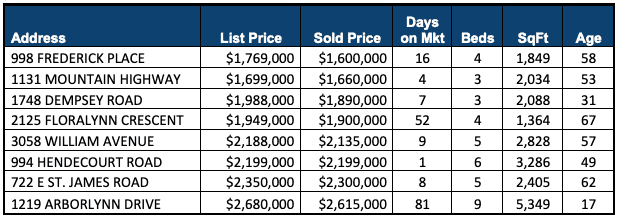 There were 8 detached homes sold in August with an average sale price of $2,037,375 (median = $2,088,000)