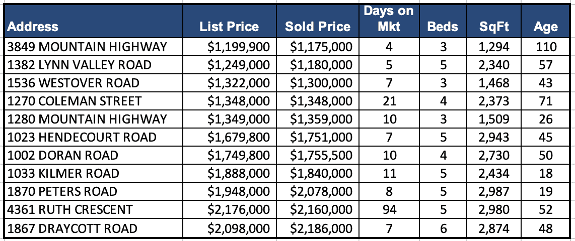 There were 11 detached homes sold in December with an average sale price of $1,648,409 (median = $1,751,000)