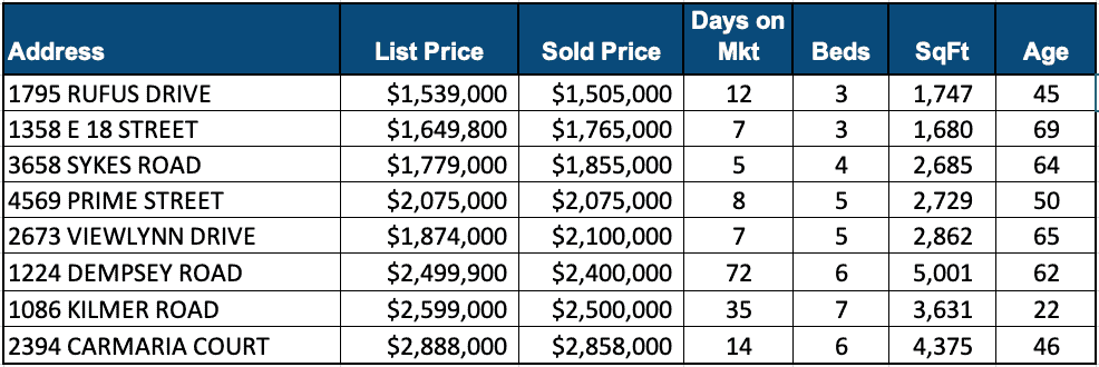 There were 8 detached homes sold in February with an average sale price of $2,132,250 (median = $1,974,500)