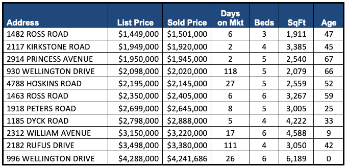 There were 11 detached homes sold in February with an average sale price of $2,573,698 (median = $2,405,000)