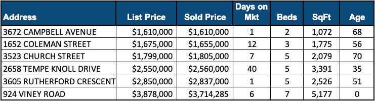 There were 6 detached homes sold in January with an average sale price of $2,363,547.50 (median = $2,174,500)