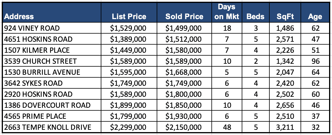 There were 10 detached homes sold in July with an average sale price of $1,732,700 (median = $1,708,500)