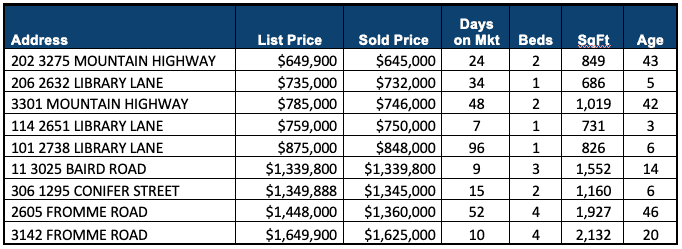 There were 9 attached homes sold in July with an average sale price of $1,043,422 (median = $848,000)