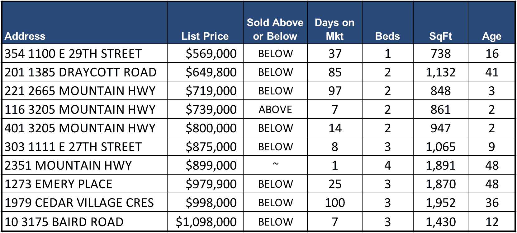 The average sale price achieved was less than list price by 1.54%
