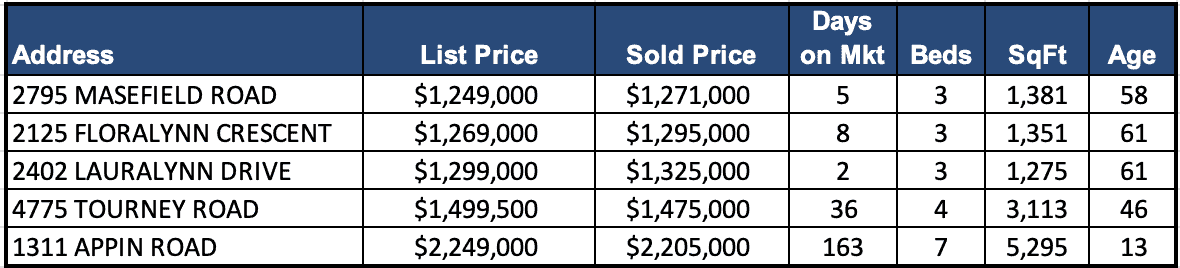 There were 5 detached homes sold in April with an average sale price of $1,514,200 (median = $1,325,000)