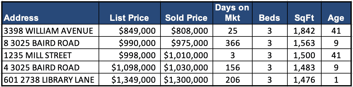 There were 5 attached homes sold in May with an average sale price of $1,024,600 (median = $1,010,000)