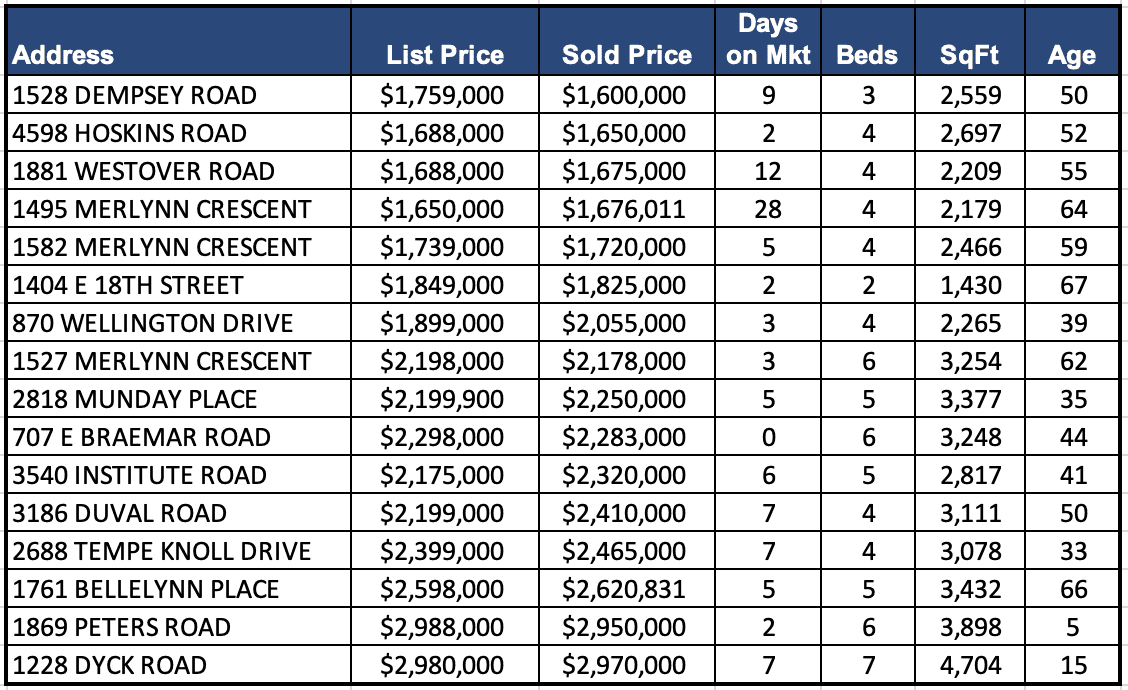 There were 16 detached homes sold in June with an average sale price of $2,165,490 (median = $2,214,000)