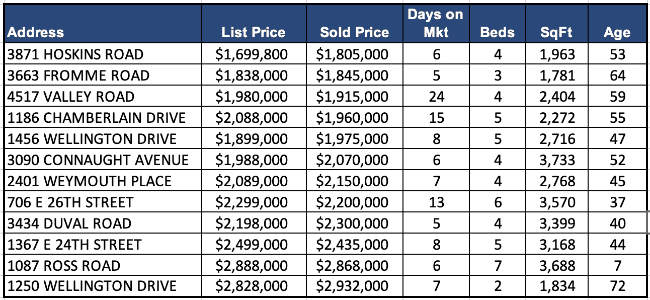 There were 12 detached homes sold in June with an average sale price of $2,204,583 (median = $2,110,000)
