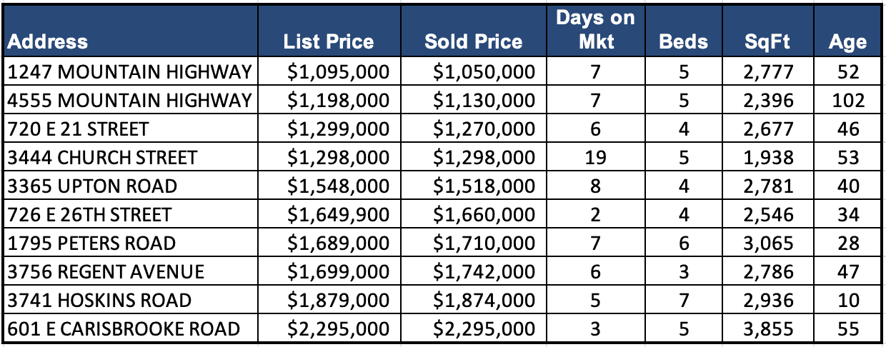 There were 10 detached homes sold in March with an average sale price of $1,554,700 (median = $1,589,000)