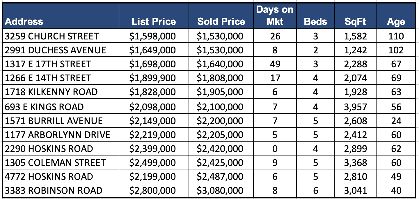 There were 12 detached homes sold in March with an average sale price of $2,110,833 (median = $2,123,500)