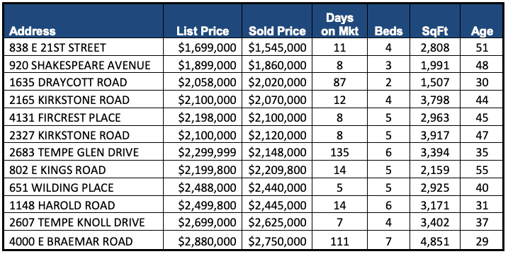 There were 12 detached homes sold in March with an average sale price of $2,194,400 (median = $2,134,000)