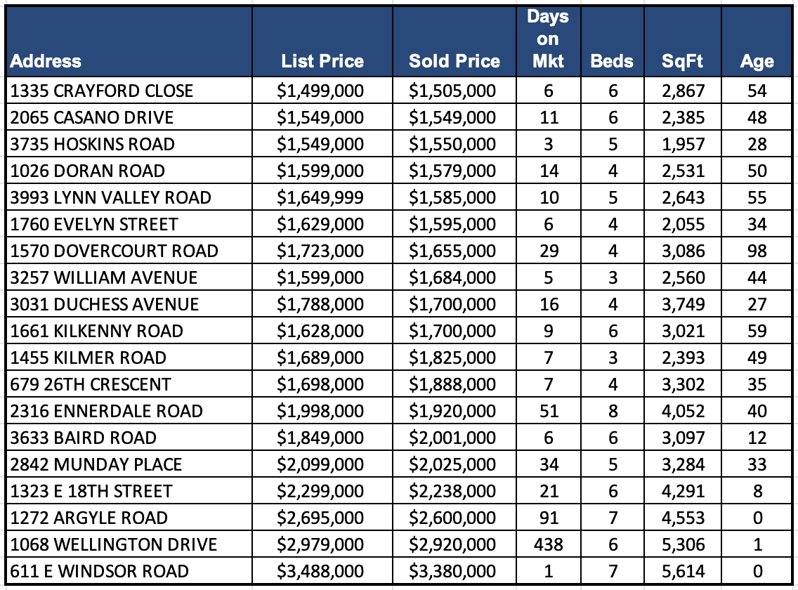 There were 19 detached homes sold in November with an average sale price of $1,942,052 (median = $1,700,000)