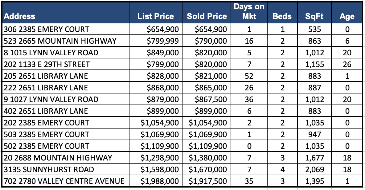 There were 14 attached homes sold in November with an average sale price of $1,052,828 (median = $883,250)