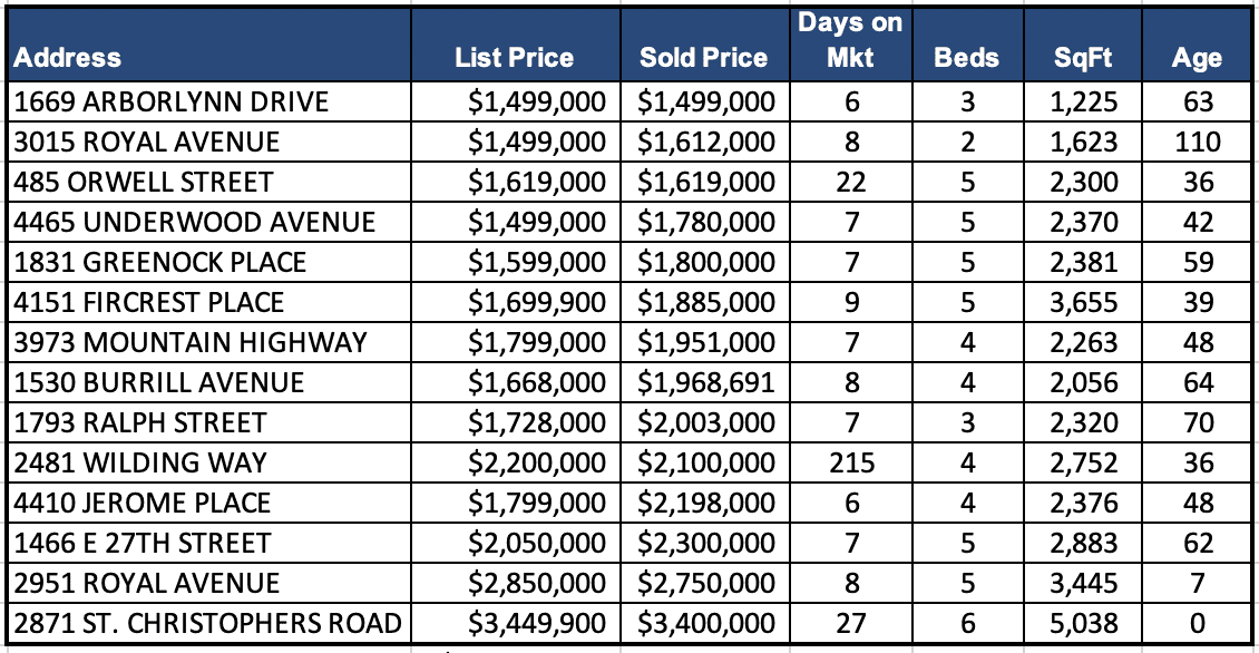 There were 14 detached homes sold in December with an average sale price of $2,061,835 (median = $1,959,846)