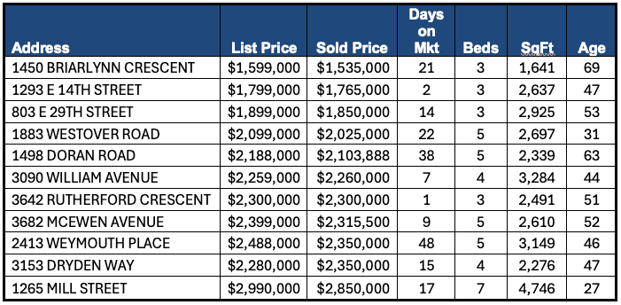 There were 11 detached homes sold in November with an average sale price of $2,154,944 (median = $2,259,000)