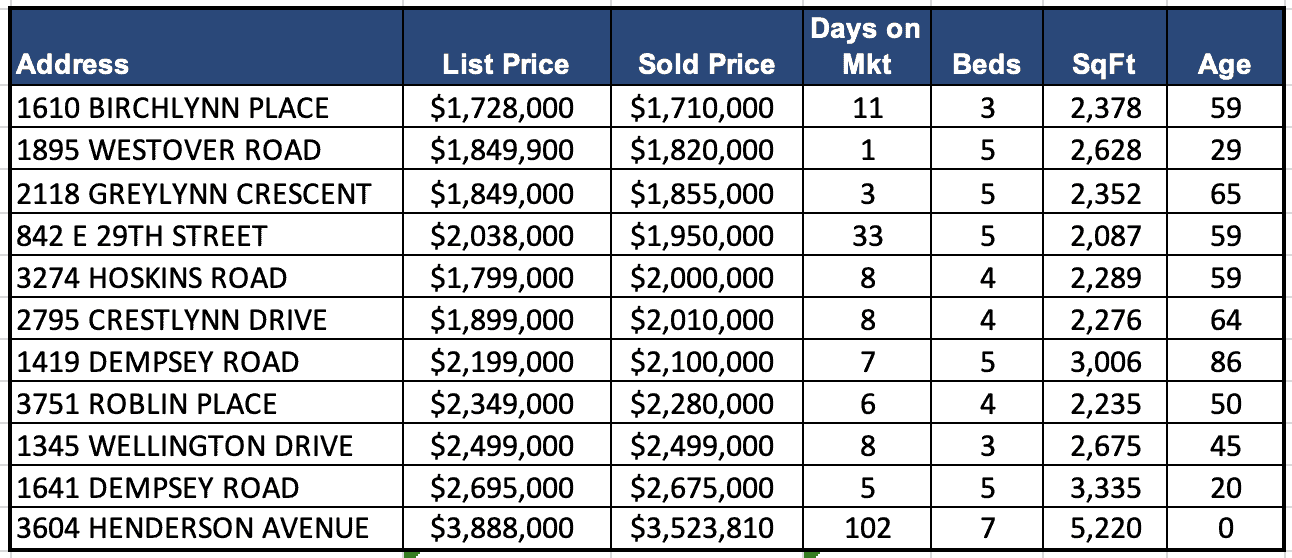 There were 11 detached homes sold in October with an average sale price of $2,220,255 (median = $2,280,000)