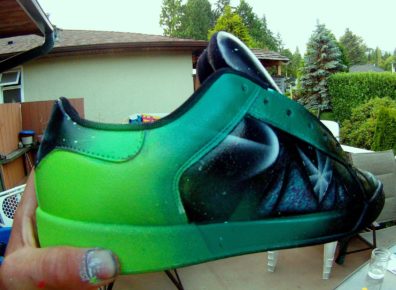 I always drew for fun when I was growing up. I’m a self-taught artist with a vast imagination. When I was young I mainly used shading pencils, pencil crayons, and felt. I would create cartoon characters and landscapes. I would colour them in, practice shading and bring them to life that way. I continued that from very young to about 20 years old, and I still love to colour and shade drawings in.Then around the age of 20 I started taking the drawings I did on paper and put them onto canvases using acrylics. This made the characters and landscape pop out way more. I’ve always had a love for graffiti. The big colourful pieces always attracted me. I would sketch out letters and create a background then colour it all in with the acrylics.