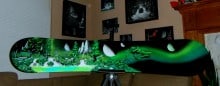 Can you tell us about one or two of your favourite pieces?My first favourite piece would have to be the snowboard I painted. The board was unusable so I turned it into a piece of art, I call it “Mystic Forest” I like it because the greens pop out so nicely and I just think it all flows nicely.The second one would have to be one I recently did of Twin Falls. It was my first try at it, and was from memory. I like this because it has opened a new set of paintings. I am going to be doing one of 90-foot pool, focusing on the jump known as “gateway”.