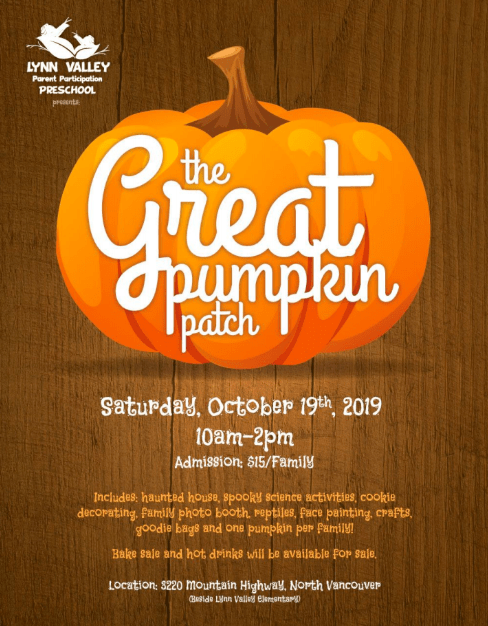 Head to central Lynn Valley for pumpkin fun for all ages Oct. 19! Lynn Valley Elementary School and Lynn Valley Parent Participation Preschool will be hosting their pumpkin patches to kick off the fall season.