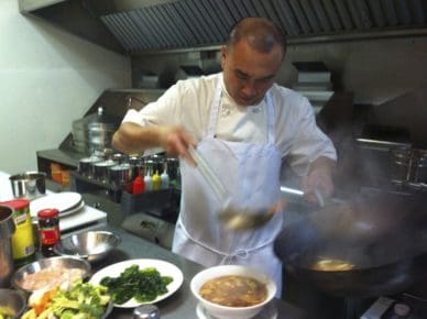 Cindy explained that Szechuan cuisine is a branch of "Chinese food" that emerged from northern China. Cantonese food, which is served by most North Vancouver Chinese food restaurants, hails from the south. While many of the dishes are the same, Szechuan cooks are known for kicking up many of their recipes with the addition of spices.However, that doesn't mean that all the dishes are hot and spicy - there's a full range, and you'll know which is which by the little chili icons next to the menu items. The couple knows that many people, especially children, prefer milder seasoning, so there is something for everyone in the family.We were able to watch Chef Li at work in the kitchen, and witness the skilful transformation of fresh meat and vegetables into a range of steaming, colourful - and perfectly seasoned - dishes.