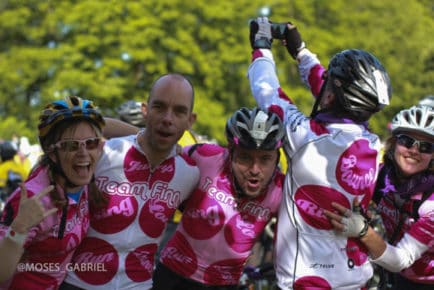 Ben’s Big Lemonade Stand and Bake Sale . There is a community feel to Team Finn that is similar to the community feel of living in Lynn Valley and that is something that we never want to lose,” said Patrick.Today the team includes friends, researchers, and former strangers who were touched by Finn’s story, now all united to change the story of childhood cancer. “I was inspired by Finn's parents and wanted to make a difference,” said Nicola vanHeyst, Finn and Baird’s preschool teacher, who began riding with Team Finn’s first RTCC and will conquer her ninth this year, having also completed marathons with the team. “But mostly I want people to remember Finn as a boy who lived courageously, and despite everything, he would run, jump, bounce, dance, sing, smile, love and ride.”That mantra is the foundation of every decision Team Finn makes.“The mantra explains why I continue to ride for the team - it’s about living and helping children live,” said Nicola. “And we welcome everyone in the community; it doesn't matter if you are an athlete, or what age you are, and whether you look good in lycra or not!“When I see other pink jerseys out on the road I feel so proud to be part of such an amazing team,” she said.Those jerseys are now synonymous with the RTCC. They have been there from the beginning. The riders have a reputation of joy, big hearts, and encouragement.“Team Finn has had an incredible impact on the Ride,” said Lindsay Carswell, director for the Ride to Conquer Cancer at the BC Cancer Foundation. “They have raised a tremendous amount of money for cancer research and infused a truly remarkable spirit into the entire community while doing so.”
