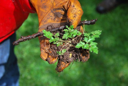 In partnership with A Rocha, a non-profit organization that engages in scientific research, environmental education and community-based conservation projects, St. Clement's Anglican Church in Lynn Valley recently held a "Good Seed Sunday, " involving a special service, stream clean-up and invasive plant pull. This article was submitted by parishioner Wilna Parry, with photos by Kathleen Biebrich. St. Clement's parishioners were invited through liturgy, prayer and song to participate in Good Seed Sunday. During the Eucharist the children brought up plants and seeds to be blessed, and we sang about the glory of God's creation as the children provided a joyful instrumental accompaniment. Each family was given a small plant by the children.