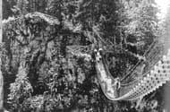 That day also marked the opening of the suspension bridge that crosses high over the roaring waters below. When first opened, it cost ten cents to cross –whether or not you were brave enough to make it all the way to the other side! It eventually fell into disrepair and was closed, but has for some decades now been well-maintained by the District of North Vancouver, which provides this free attraction to local residents and the thousands of tourists who flock there every year.For a historical look at the park on the occasion of its 100th anniversary, click here.