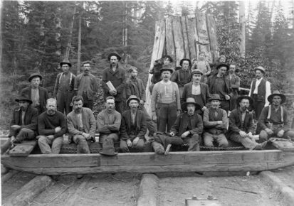 Crew of Lynn Valley Lumber Co. Mill on skid road, 1906. Courtesy NV Museum & Archives.