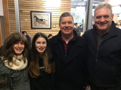 Cheryl, Olivia and Tim Green with LVLife realtor Kelly GardinerThe annual Lynn Valley Walk of Trees lighting ceremony is always a festive event, and this year was no exception as a sunny afternoon and snow-capped mountains brought the crowds out to Lynn Valley Village on December 3.New this year was a candlelit lantern parade that wound through the dark Christmas tree forest while we were serenaded by Lynn Valley’s Bobbi Smith leading Silent Night. The Christmas tree countdown took place shortly after, with Mayor Richard Walton and MLA Jane Thornthwaite pushing the big red button that lit up the trees that have been decorated by community businesses and organizations. Thanks to these sponsors, Lynn Valley Community Association Gillian Konst was them able to present the Harvest Foundation with a cheque for $2,750.An extra-special highlight for us was being on hand to present the LynnValleyLife Good Neighbour Award to a local citizen who contributes time and energy to their community all year ’round.This year’s winner of the plaque and Black Bear Pub gift certificate is a real friend to many in the community – whether they know it or not! For as long as we have known Tim Green, he has always been found behind the scenes, making sure community events run smoothly for his fellow organizers and for all the Lynn Valley residents who come out to enjoy themselves at Lynn Valley Days, the annual toy sale, and more.Tim is a volunteer extraordinaire and a genuinely nice guy, and we are delighted that he was put forward for this award by the Lynn Valley Services Society (LVSS) and the Lynn Valley Community Association (LVCA) for this recognition. His nomination letters speak for themselves, so we wanted to print them in their entirety, below. We hope they get you into the spirit of the season… and that you visit the Christmas Tree Walk in Lynn Valley Village soon!-Dear LynnValleyLife,We would like to nominate Tim Green for this year’s Good Neighbour Award. He is our “Silent Hero”.Quietly, behind the scene, seeking no recognition, Tim has assisted and supported the LVSS at Mollie Nye House for many years. Each week he drops by to bring out our garbage bins for collection and returns to make sure everything is put away. This is a chore that would be difficult for us to manage without Tim.This summer LVSS held a Heritage Fair which was a free community event in recognition of Canada 150. As a not-for-profit we were pressed to find cost-effective solutions to the many issues that came our way. When we realized that on-site security would be needed the night before the fair we reached out to Tim to see if he knew of any individuals or firms that might provide the service for a low cost. Without hesitation Tim volunteered his services and made sure our fair site was secure throughout the night.Tim cares for Lynn Valley very much and serves as a volunteer for Citizen’s Crime Watch (CCW) on the North Shore. In January of this year, Tim was driving past Mollie Nye House and noticed suspicious activity. The motto of the CCW is to “Observe, Record and Report” and while he was not on duty that evening Tim monitored the activities, stayed onsite and contacted CCW who in turn contacted the RCMP. Tim’s quick actions stabilized a situation that could have been much worse and minimized the damage to Mollie Nye House. This is another example of Tim’s dedication to our community and why we know he is our “Silent Hero”.Sincerely,Ginny Phillips