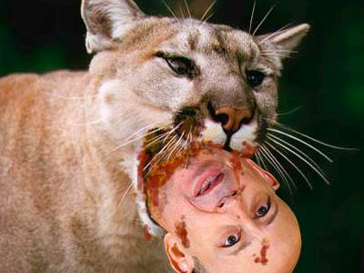 Here's what we would have put on our Facebook page if we weren't being such a gosh-darn responsible community media outlet and didn't want to inadvertently incite mass panic, a la the Orson Welles "War of the Worlds" radio play. This FAKE image was mocked up after a cougar was spotted near a Goldman Sachs office in Salt Lake City in 2010. (Courtesy: Business Insider.)In fact, cougar attacks are extremely rare in this province - more people are killed by bees! For a good safety guide on cougars in B.C., visit here.